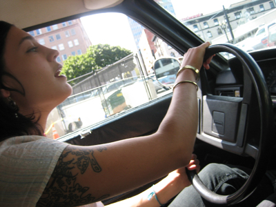 Genius moment of the day: Stevie driving me around in a decrepit Volvo, blasting AM radio and singing along:
