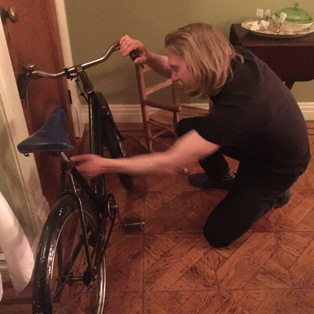 Here he is seen checking out the vintage bicycle he sold our son way back in 2004, when we moved to England (impressed + baffled we kept it and moved it to NYC).